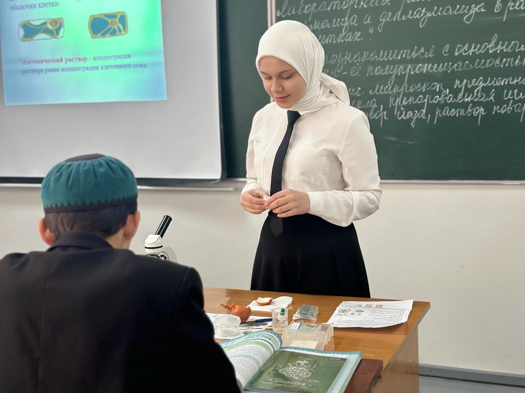 в МБОУ «СОШ 1 с.Алхазурово им.А.Сулейманова» на базе центра образования естественно-научного профиля «Точка роста» учителем биологии Акуевой И.А. был проведена лабораторная работа «Исследование плазмолиза и деплазмолиза в растительных клетках».