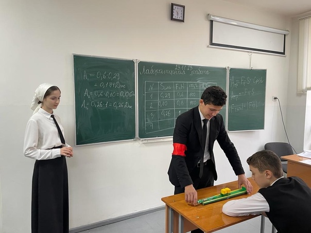 В МБОУ «СОШ 1 с.Алхазурово им.А.Сулейманова», на базе центра «Точка Роста», с обучающими 9-х классов была проведена лабораторная работа по физике «Определение работы силы трения при равномерном движении тела по горизонтальной поверхности».