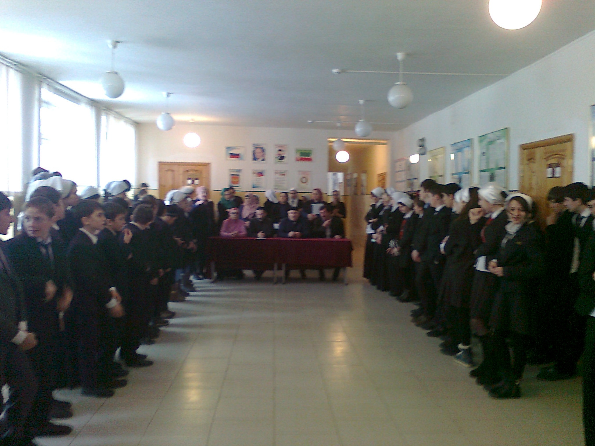 20.02.2015В МБОУ «СОШ №1 с Алхазурово им . А. Сулейманова» 19 февраля 2015 г проведена встреча с учащимися 8-11 классов по теме «Роль суфизма в жизни мусульман ».(отв организатор ДНВ Хазаев А-К,директор школы Джукалаев СМ.) Присутствовали преподаватели школы , директор СДК с. Алхазурово Килоева Т.Д, родители старшеклассников и учащиеся 9-11 классов . Проведена беседа о соблюдении норм Ислама и сунны Пророка Мухаммада (с.а в. ), о роли суфизма в обеспечении стабильности и безопасности в государстве. Зам. директора по ВР Х.С. Хазаева