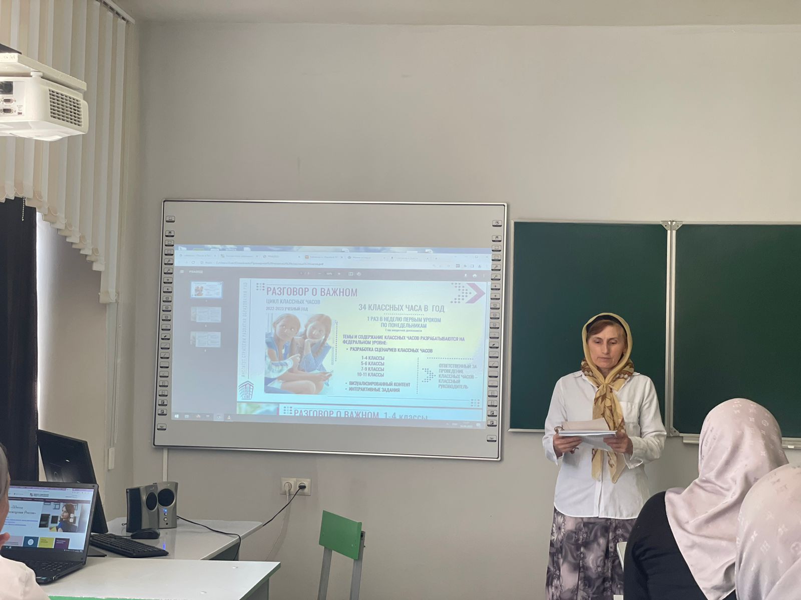 С учителями была проведена беседа о примерных темах классных часов на 2022-2023 учебный год в рамках обновлённых ФГОС.