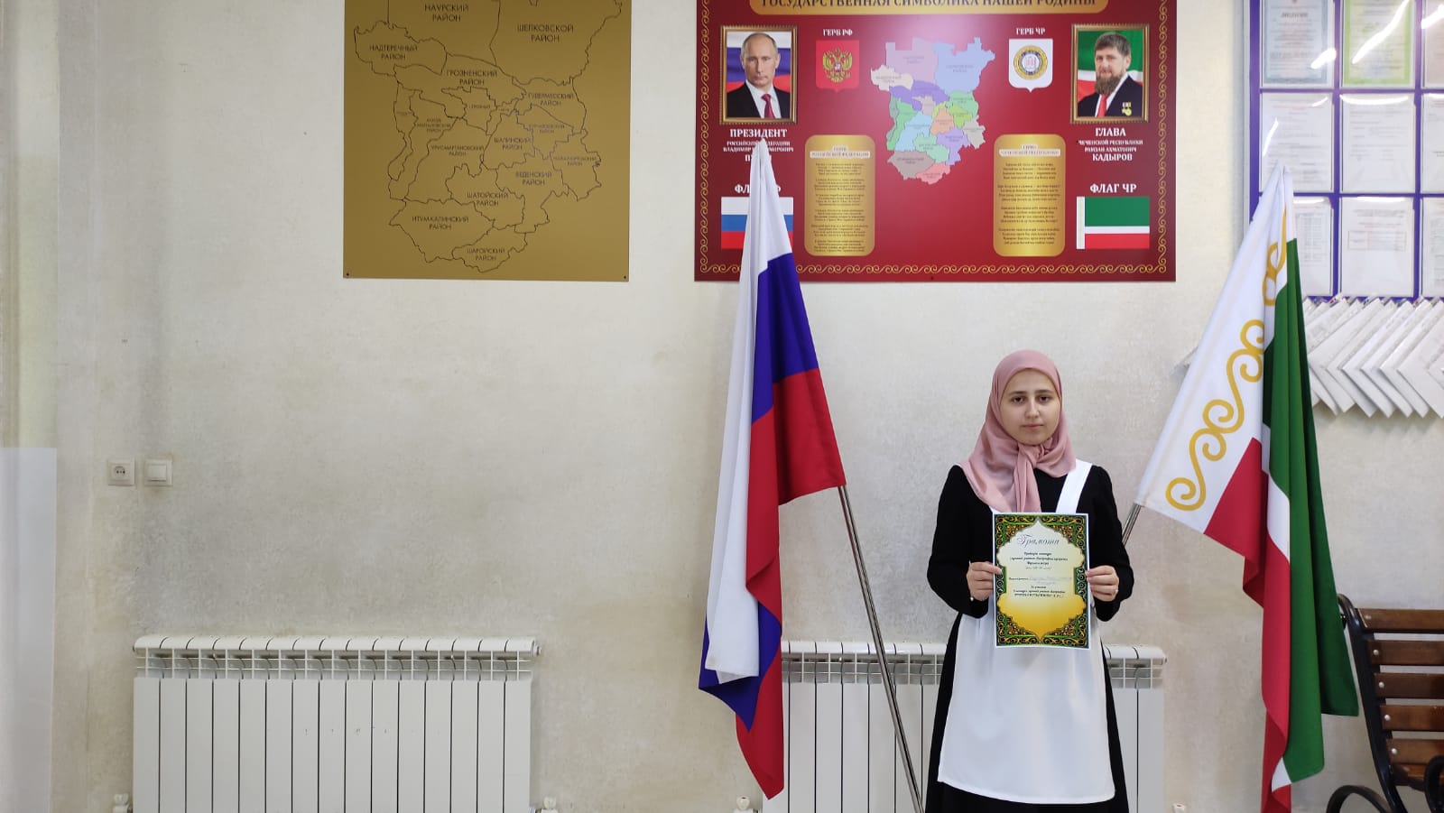 Конкурс " Лучший знаток биографии Пророка Мухаммада(да благословит его Аллах1 и приветствует). От школы участие в конкурсе приняла Дадаева Хапта - ученица 9 а класса и вошла в пятёрку лучших участников.