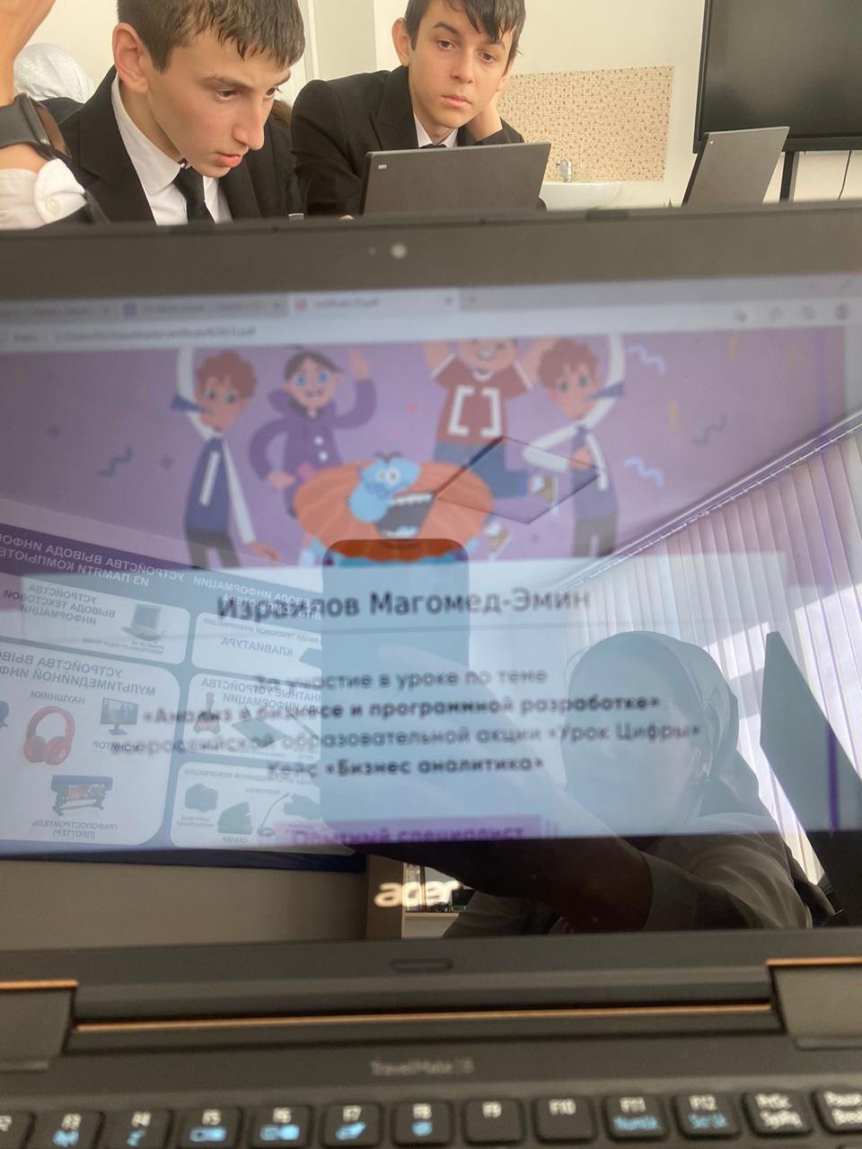 14.02.2023В рамках Всероссийского образовательного проекта «Урок цифры» 14 февраля 2023 года Исраиловой Х.Н.(учитель информатики) было проведёно мероприятие среди обучающихся 8-9 классов по теме «Анализ в бизнесе и програмной разработке», направленное на развитие ключевых компетенций цифровой экономики обучающихся.