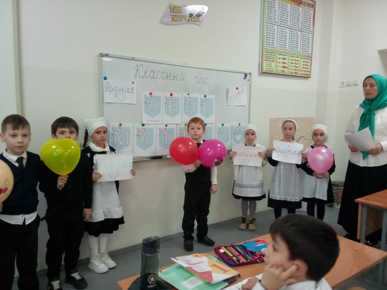 Внеклассные мероприятия приуроченные ко Дню Матери по теме "Нет тебя дороже!", проведены учителями Вахидовой А. С. и Алиевой К. Я. с учащимися и родителями 3 в и 1 б классов