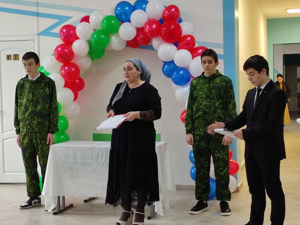 09.12.20239 декабря, в МБОУ "СОШ 1с .Алхазурово им. А. Сулейманова" состоялось общешкольное мероприятие: "Открытие Парты Героя ", посвящённое участнику СВО, Герою ЧР, Чупалаеву Хезиру Рамзановичу.На мероприятии присутствовали родители и родственники Хезира , а также приглашённые гости-Глава администрации Алхазуровского сельского поселения Апти Ахмадов, заместитель главы Шамсуди Алдамов, представитель духовенства села -Хизир Бакаев , учащиеся и педагоги школы. Много хороших воспоминаний прозвучало о Хезире от его школьных педагогов. Память о Героях СВО почтили минутой молчания