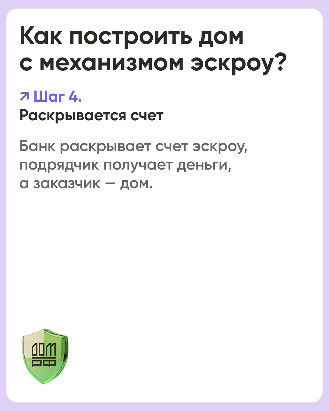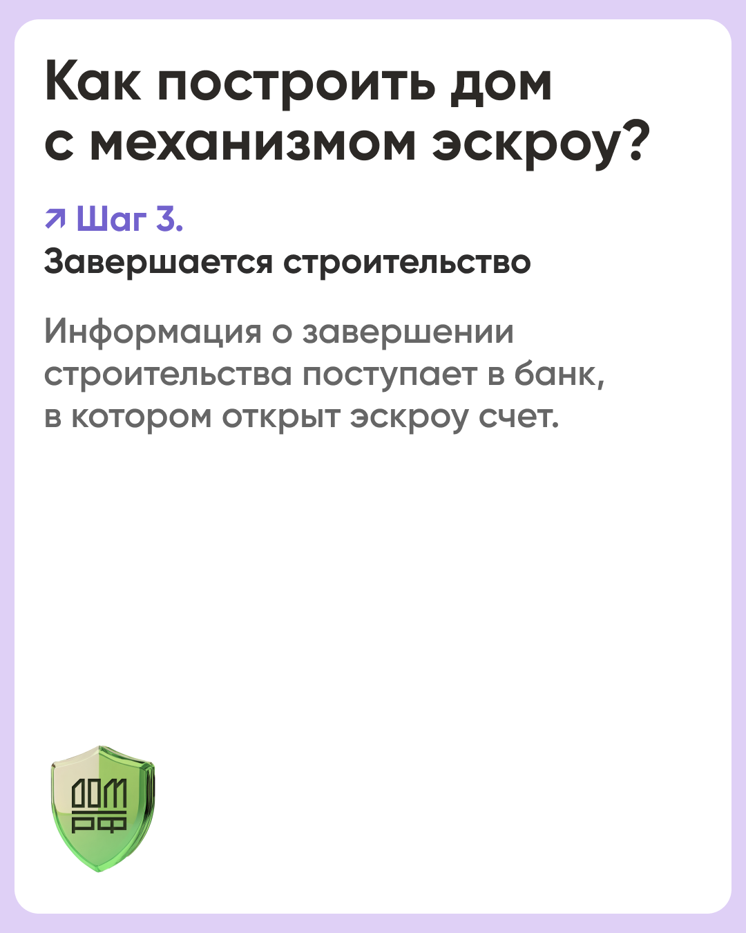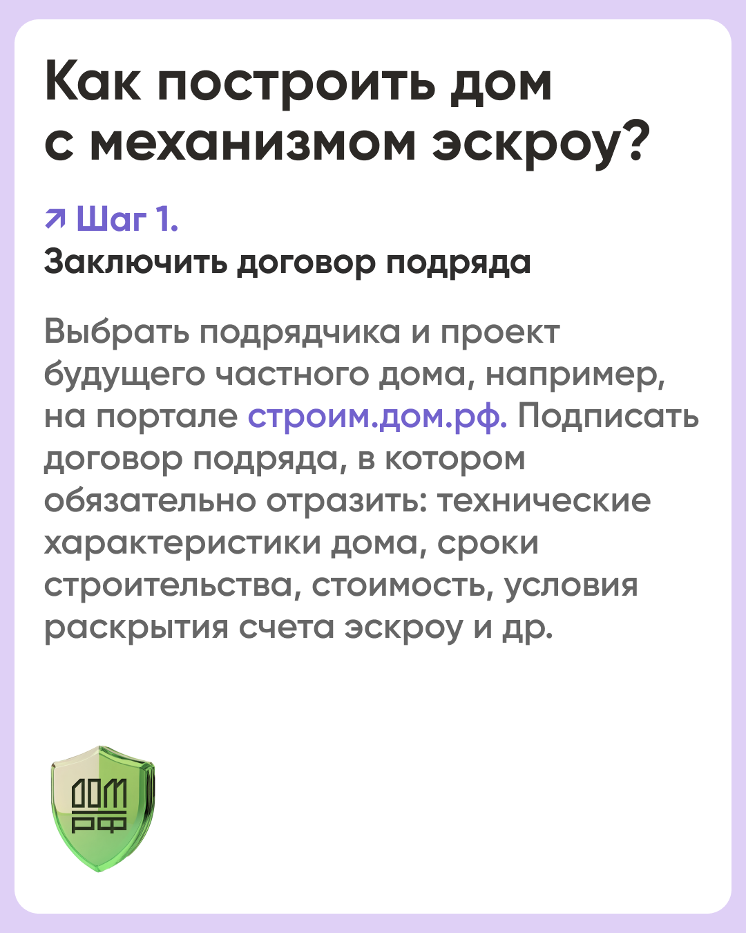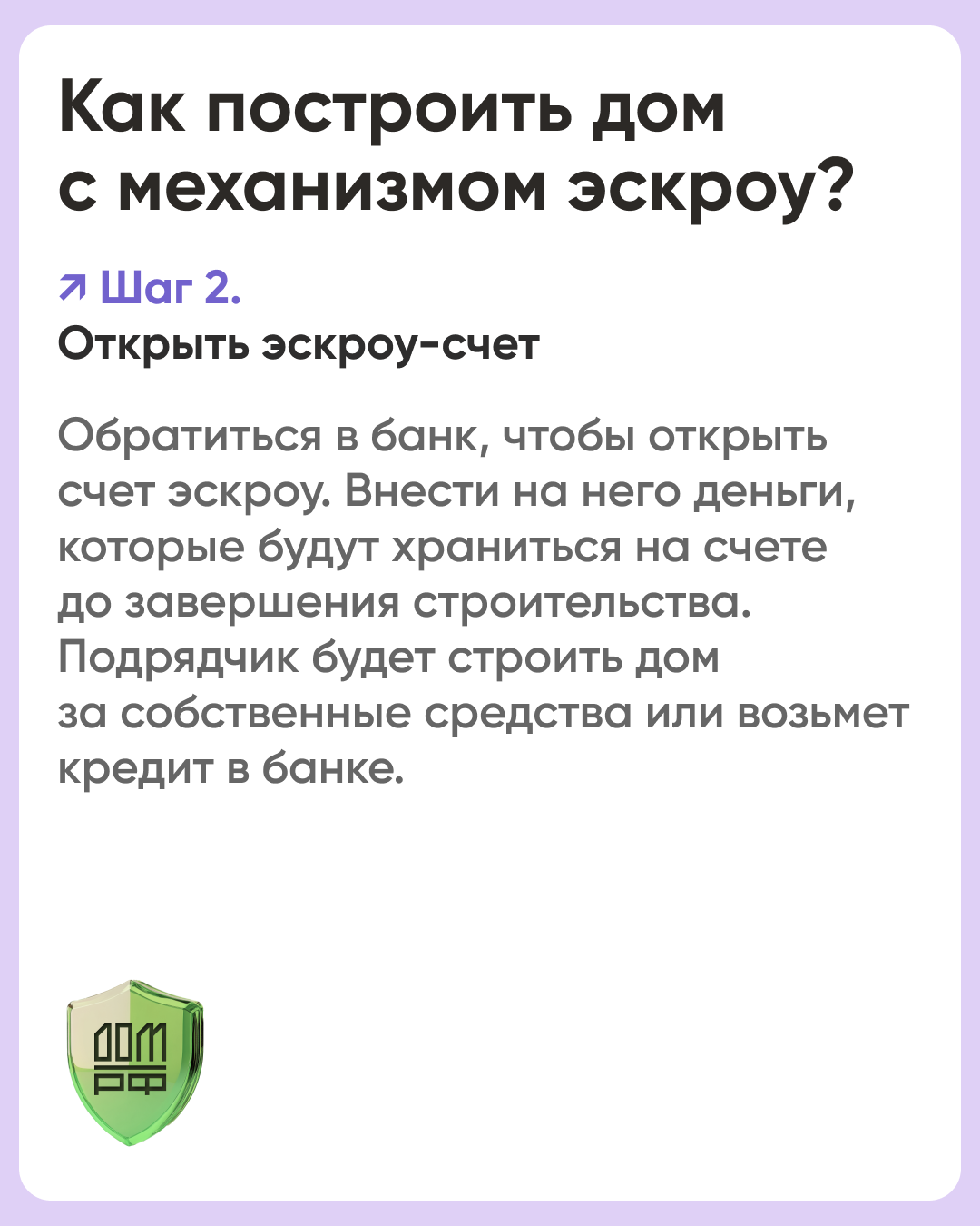 В каталоге на портале строим.дом.рф вы можете найти проекты со специальным значком «Строительство с эскроу» — это означает, что деньги на стройку, в том числе и те, которые вы можете взять в ипотеку, надежно хранятся на защищенном счете (он называется счетом эскроу).