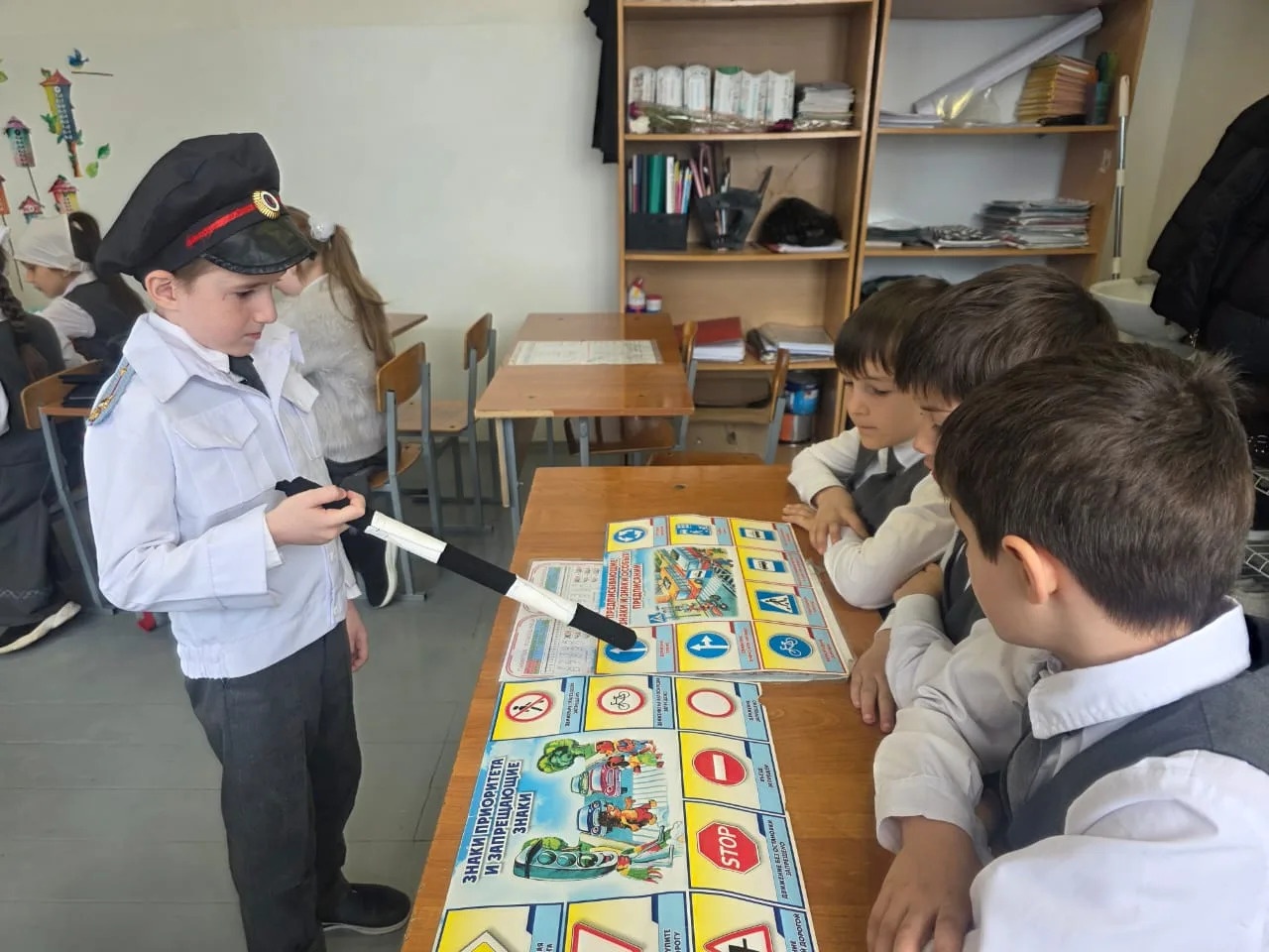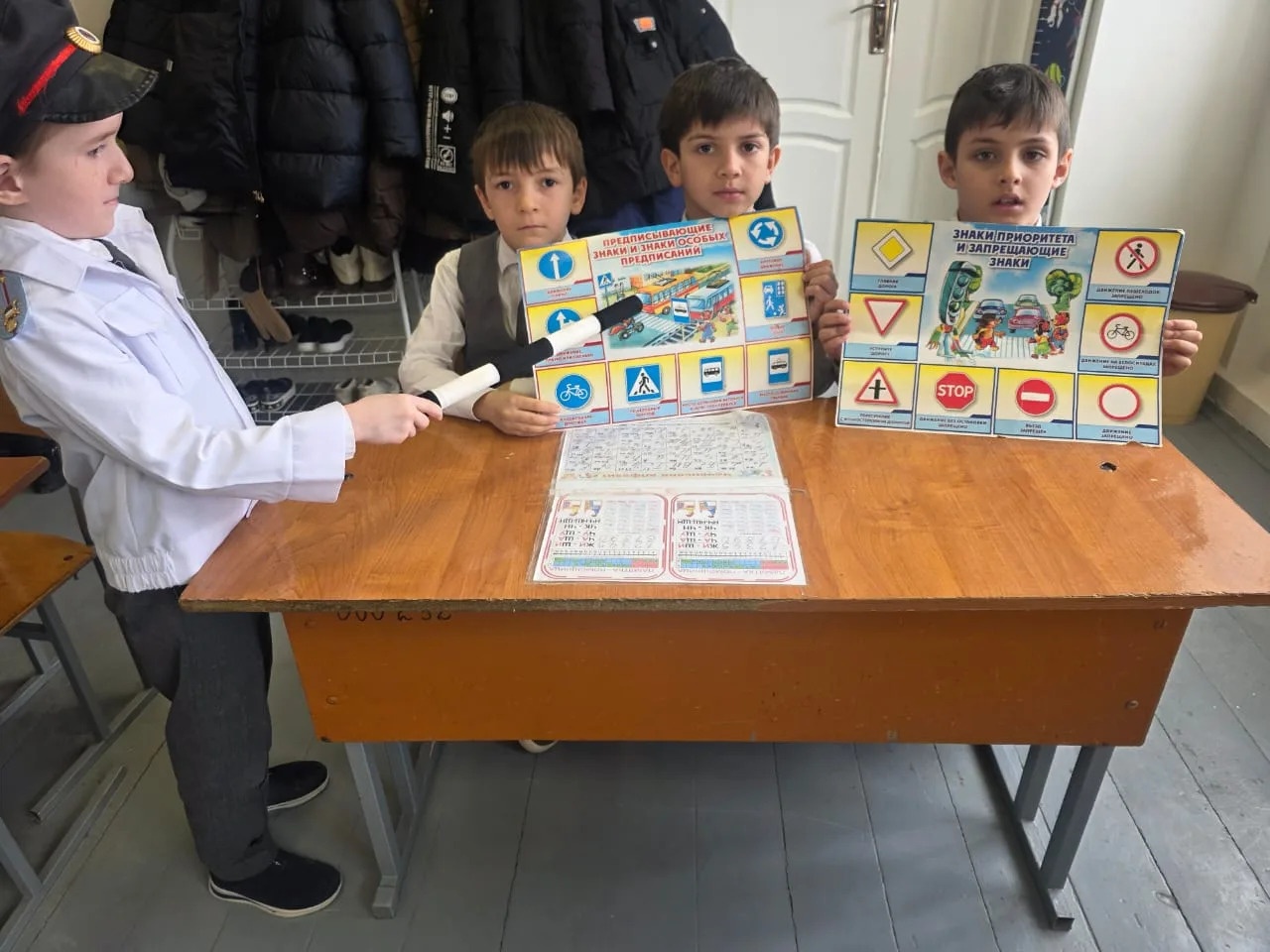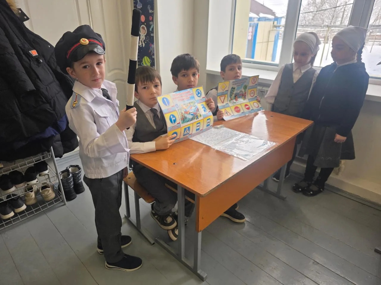 11.02.2026В МБОУ""СОШ 1 с. Алхазурово им. А. Сулейманова " в рамках исполнения плана месячника по БДД классным руководителем Тукаевой А.И. обучающимися 1" Б" класса проведён классный час по теме " Правила дорожного движения.".Цель: Повторить правила передвижения на улицах и дорогах; Развивать у детей умение находить наиболее безопасный путь от дома до школы. Учителем были подготовлены плакаты с элементами улиц и дорог, знаки дорожного движения. С обучающимися проведена беседа по повторению правил поведения на дороге и улице в зимнее время.