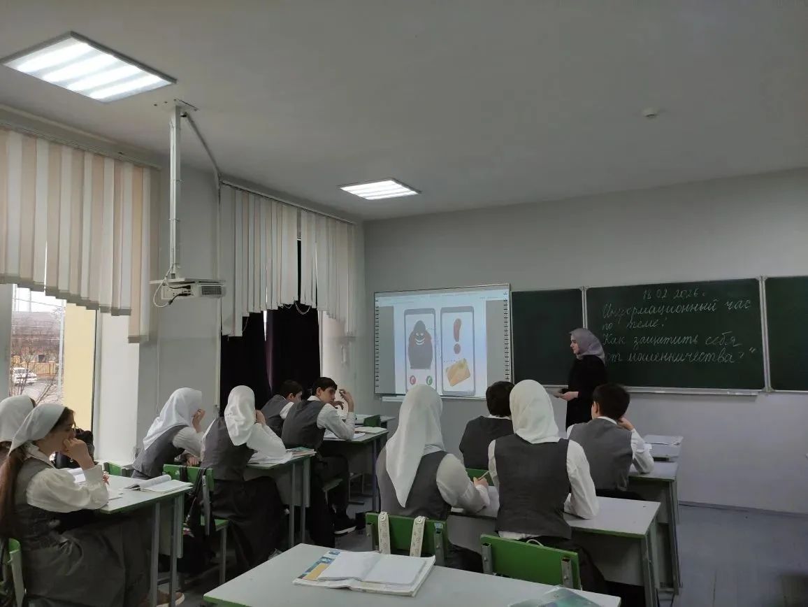 18.02.2026В МБОУ""СОШ 1 с. Алхазурово им. А. Сулейманова "в целях предупреждения и пресечения террористических и экстремистских проявлений, недопущения вовлечения несовершеннолетних в противоправную деятельность, 18.02.2026 с обучающимися 9-ых классов г. проведен информационный час по теме" Как защититься от действий мошенников?" Занятие проведено учителем обществознания Окуевой Р.Ш. с использованием предоставленного тематического материала. Профилактическая работа направлена на выработку у обучающихся навыков бдительности от действий телефонных и интернет мошенников.